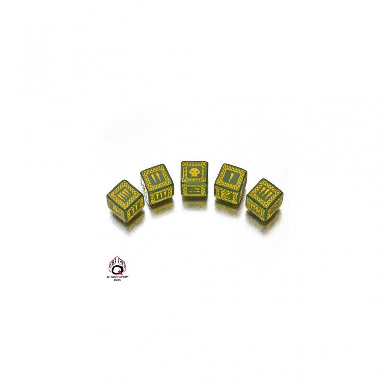 Un set de 5 dés thème Ork.