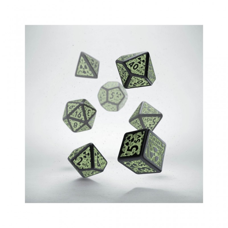 Set de 7 dés JDR phosphorescents.