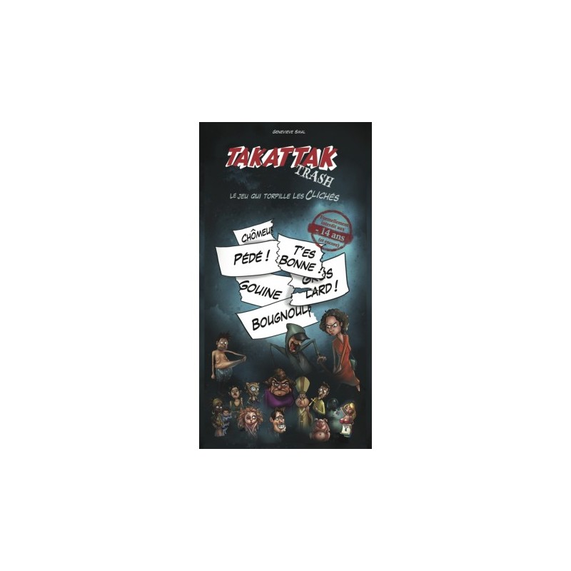TAkAttAk TRASH est un jeu de carte qui entraine à l'esprit de répartie. Racisme, sexisme homophobie, discrimination, cyber harcèlement...Il vous arrive de rester sans voix face à une remarque harcelante, un commentaire odieux ? Vous fulminez sans oser répondre, et c'est seulement le lendemain que vous vous dites : j'aurais dû répondre ça ? Ce jeu est fait pour vous. Entraînez-vous en famille, entre amis, au bureau.