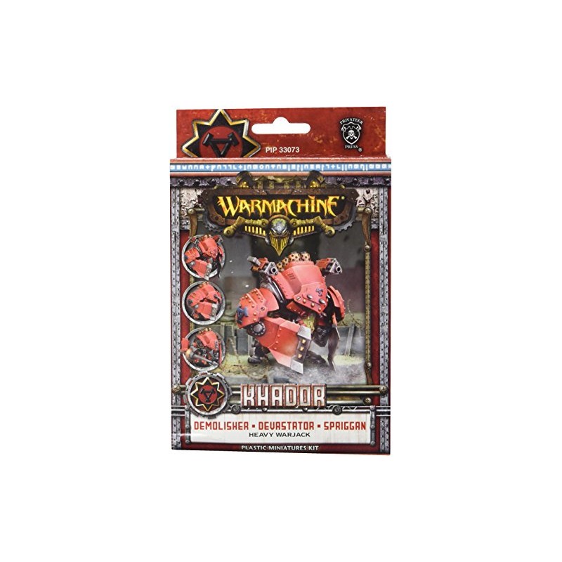 Derrière ses plaques d'acier, le Devastator est inattaquable, mais il peut ouvrir sa carapace pour projeter une pluie de shrapnels grâce à ses lance-grenades. Le succès du Devastator a mené au développement d'autres warjacks basés sur ce châssis . Le Demolisher présente la même armure que le Devastator, mais quand il ouvre sa carapace, ses bras révèlent deux cannons capables de tirer une salve dévastatrice au cœur du combat. Le Spriggan échange les bas armurés de ses prédécesseurs pour un bouclier lourd, une lance massive et des grenades à longue portée plus polyvalentes, capables d'illuminer les ennemis dissimulés.
