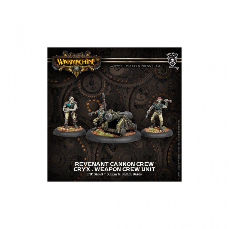 L'unité de Revenant Cannon Crew est vendue en blister (PIP 34063). Un joueur peut recruter jusqu'à deux unités de Revenant Cannon Crew par warcaster dans une armée Cryx.